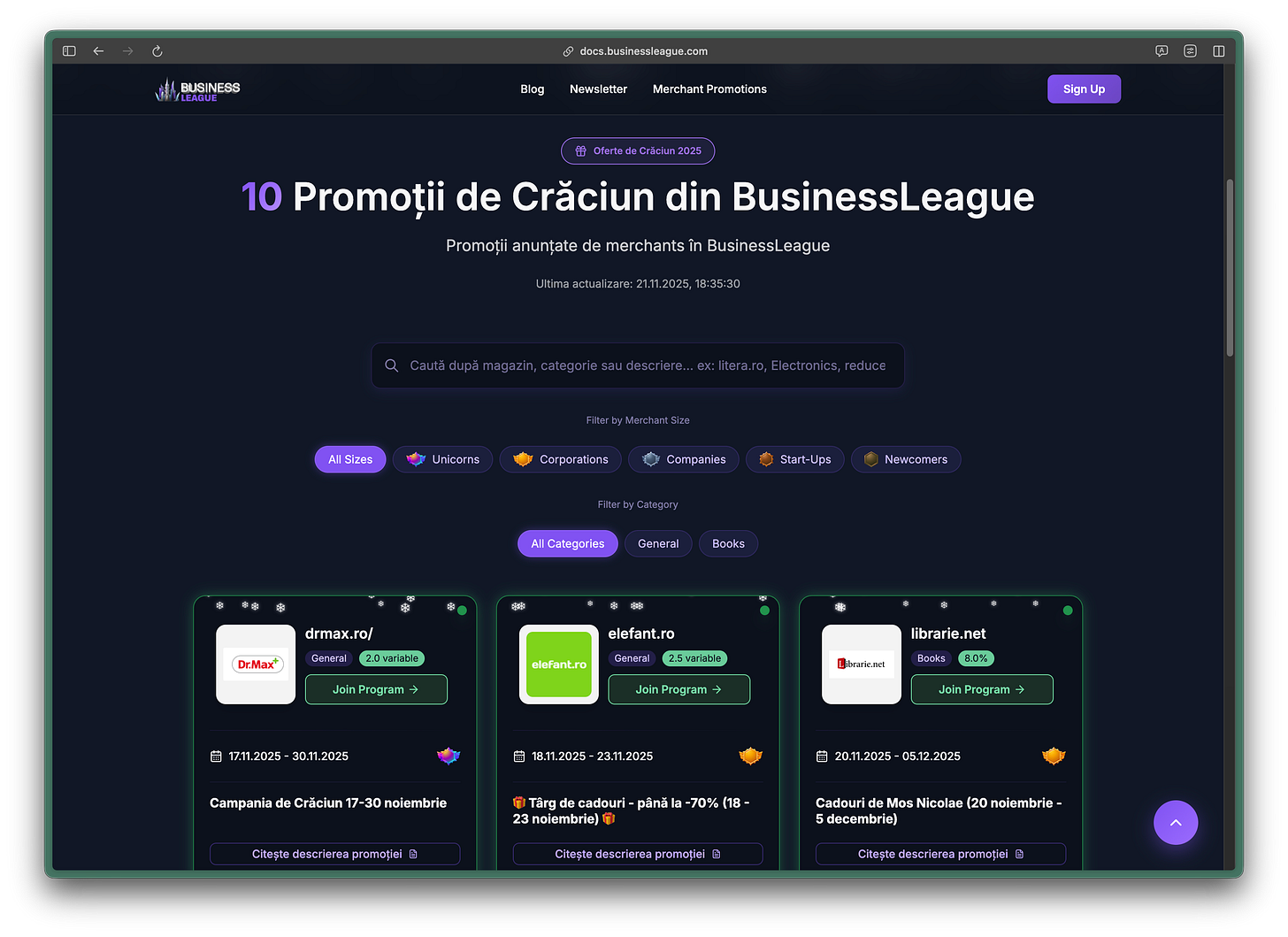 Comunitatea BusinessLeague crește rapid — magazine, afiliați, influenceri, publisheri, parteneri. Suntem recunoscători pentru implicare, energie și profesionalism.