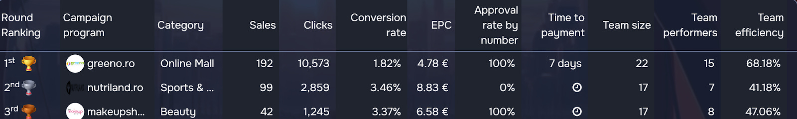 Switching over to the Merchants side, last week we had the most promising matchup in a while to cheer on. Ironically it was in the Newcomers aisle. Greeno.ro and nutriland.ro were killing it side by side. Well, things have changed since last week. That’s how Business League works. Greeno has now more than doubled their sales leaving all doubt and newcomers behind. Great stuff from their captain Andrei Grigoras who’s on a mission to make this bad boy fly high.