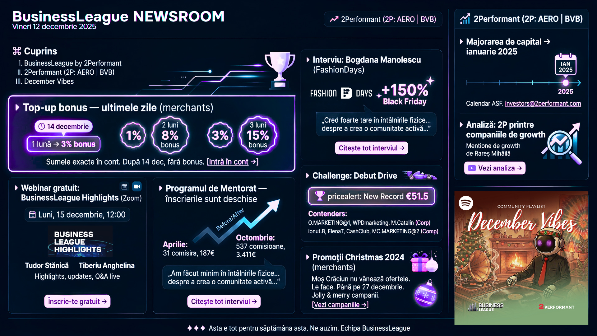 Top-up 15% bonus merchants până duminică, Zoom Luni de la 12, FashionDays #1 după +150%, 13 magazine noi - retrospectiva săptămânii BusinessLeague & 2Performant