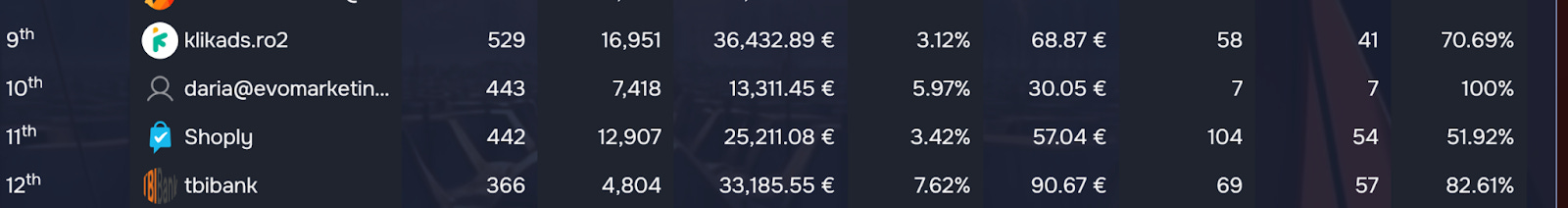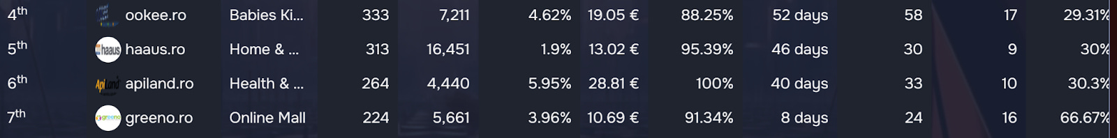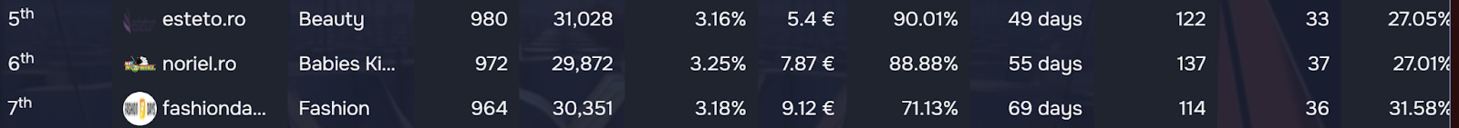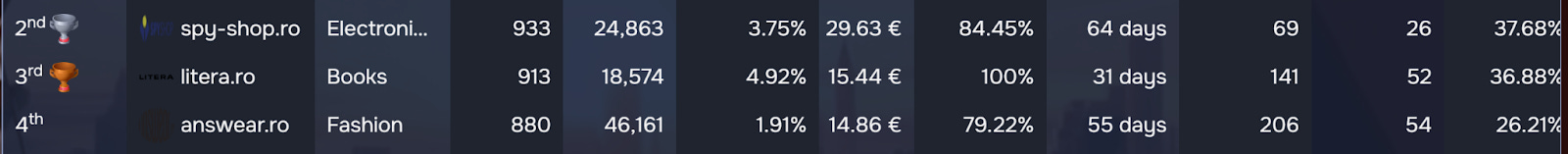 The Corporations have their own 3-way matchup with only a handful of sales separating spots #5, #6, and #7. In fact, it’s not only the number of sales that are very similar, but their stats altogether are an excellent indicator of how close esteto.ro, noriel.ro, and fashiondays.ro are. And as this 2nd round nears its end, the 3 musketeers are expected to go at it for a better place in the rankings, since the Unicorns goal is currently out of the question for them.